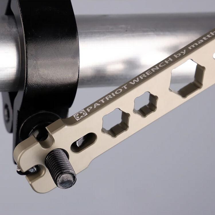 The Patriot Wrench is fabricated from durable yet lightweight 6061-T6 aluminum and is hard-coat type-3 anodized. The wrench includes a lanyard hole, which is useful for ensuring various clamps and bale blocks are safely configured when working overhead.