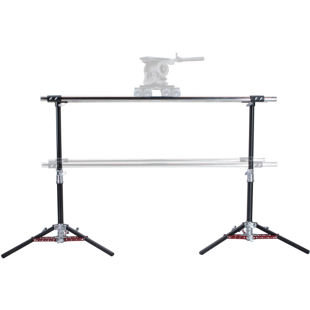 This stand features a minimum working height a full foot shorter than a standard "low-boy" combo stand, making this the ideal solution for comfortably operating camera sliders. Its universal design also makes the Slider Stand acceptable for ground-level mounting of large heavy lights. Two "Rocky Mountain" adjustable legs allow for easy leveling on unsteady terrain, ensuring smooth camera movement on location. Accessories for the stand like wheels, a baby ball head adapter, a Magic Finger, and a 5/8" stud adapter are available separately.