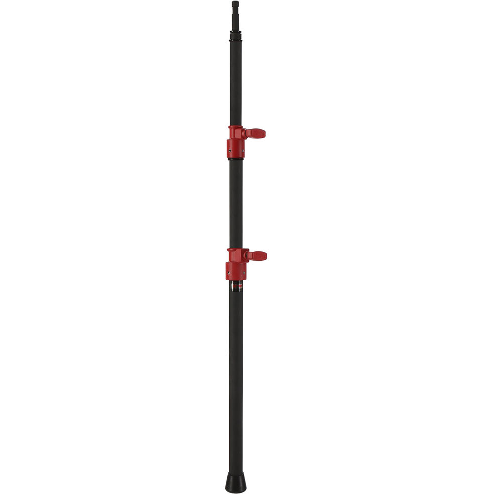 The Steady Rest from Matthews, also known as "Moses' pole", is a double-riser, telescoping pole with a crutch tip on the bottom and a 5/8" baby pin on the top. It is designed to allow you to rest your stabilizer system in-between shots so you can give your back a break. Additionally, it can be used as end support for slider systems when rigged on a dolly to help prevent sag. To rig the Steady Rest to your slider, you need a separately available ball head adapter.
