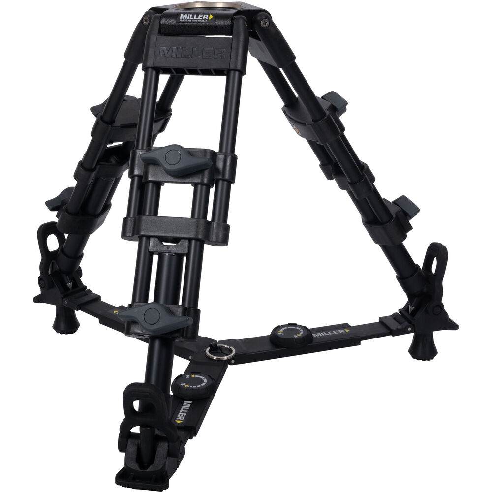 Get low to the ground and capture dynamic footage with this 2-Stage Alloy Tripod from Miller. Strong, versatile, and compact, this tripod features a working height of 9.8 to 20.5" and is compatible with 75mm ball heads. Two-stage legs are designed with single-twist positive leg locks for quickly adjusting the height of the tripod, and durable black anodized alloy tubing securely supports camera loads up to 55 lb. The included ground spreader provides torsional strength, and integrated stainless steel spikes provide stability and slip resistance. A case is also included for storage and transport.