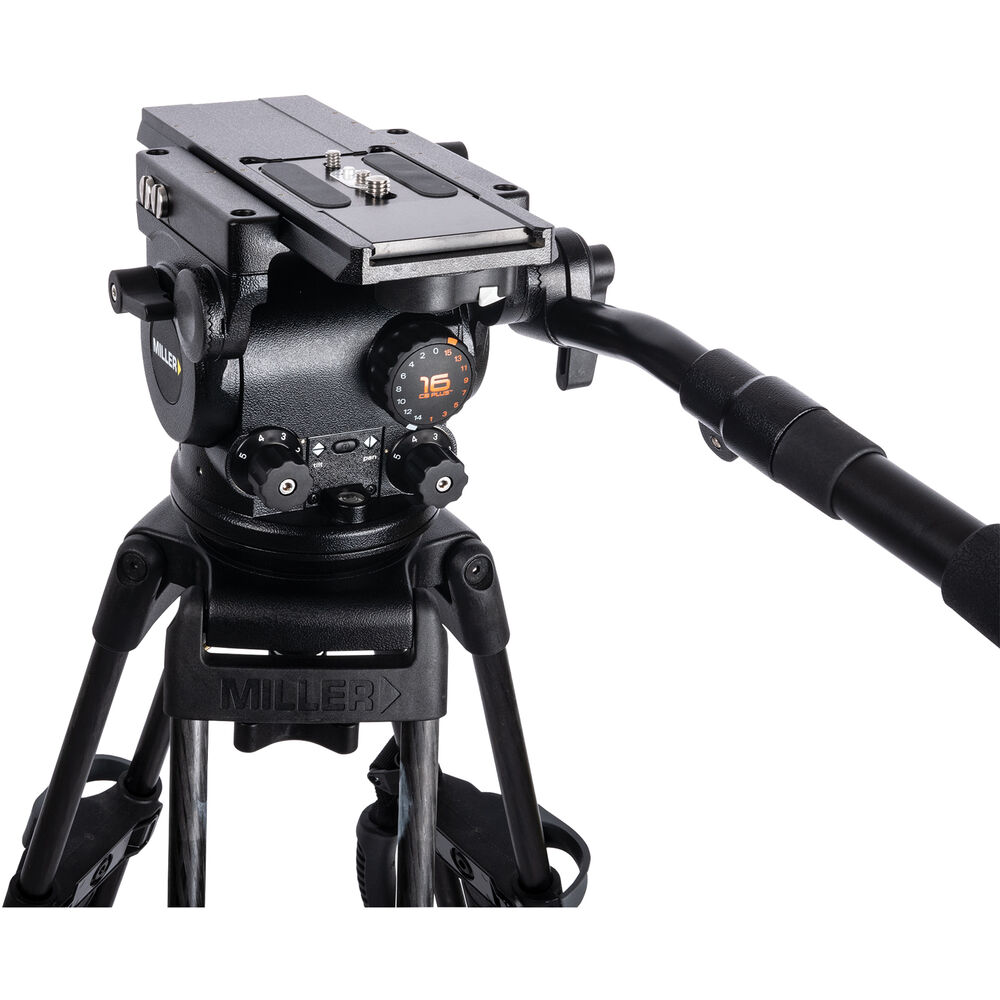 The versatile Miller Arrowx 1 Fluid Head accommodates a wide payload range of 0 to 35.3 lb using 16 steps of counterbalance. Pan, tilt, and counterbalance can all be set to zero to support even the lightest cameras. This pro video head offers five steps each of pan and tilt drag plus zero and counterbalance with CBPlus for precise control. The side-load Euro plate has a 4.7" sliding range and features easy drop-in mounting without the alignment issues posed by rear-loading designs.