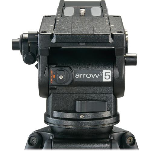 The Arrow X5 Fluid Head from Miller is suitable for use with ENG and EFP camcorders. It offers a 4.4 to 46.2 lb payload range and seven selectable pan-tilt fluid drag positions. It features precision fluid drag with a 16-position CB Plus counterbalance system. CB Plus is a sequential counterbalance design, features eight larger counterbalance steps, allowing you to quickly and efficiently achieve the required counterbalance position. The system's one flick switch located at the front of the head adds a half step between each of the eight larger steps enabling counterbalance fine-tuning when required. The Arrow X5 fluid head features a 100mm ball leveling with three M5 holes for flat base mounting. The pan and tilt locks utilize caliper disc brakes for reliable, short-throw fixing.