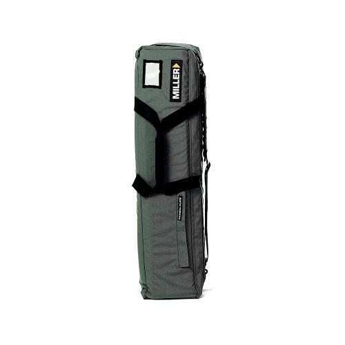 The Miller 872 Soft Tripod Case is a padded tripod carry case designed for the Miller Arrow 2 stage tripod systems. It has rigid sidewalls sandwiched between high density foam padding and a head-end cradle to protect the tripod and fluid head from heavy bumps during flight and vehicle transport. It has a weatherproof Cordura construction with heavy duty zippers on the bag, 2 interior pockets and 1 large outside pocket. The case is carried by either the padded interlocking carry straps or the padded shoulder strap.