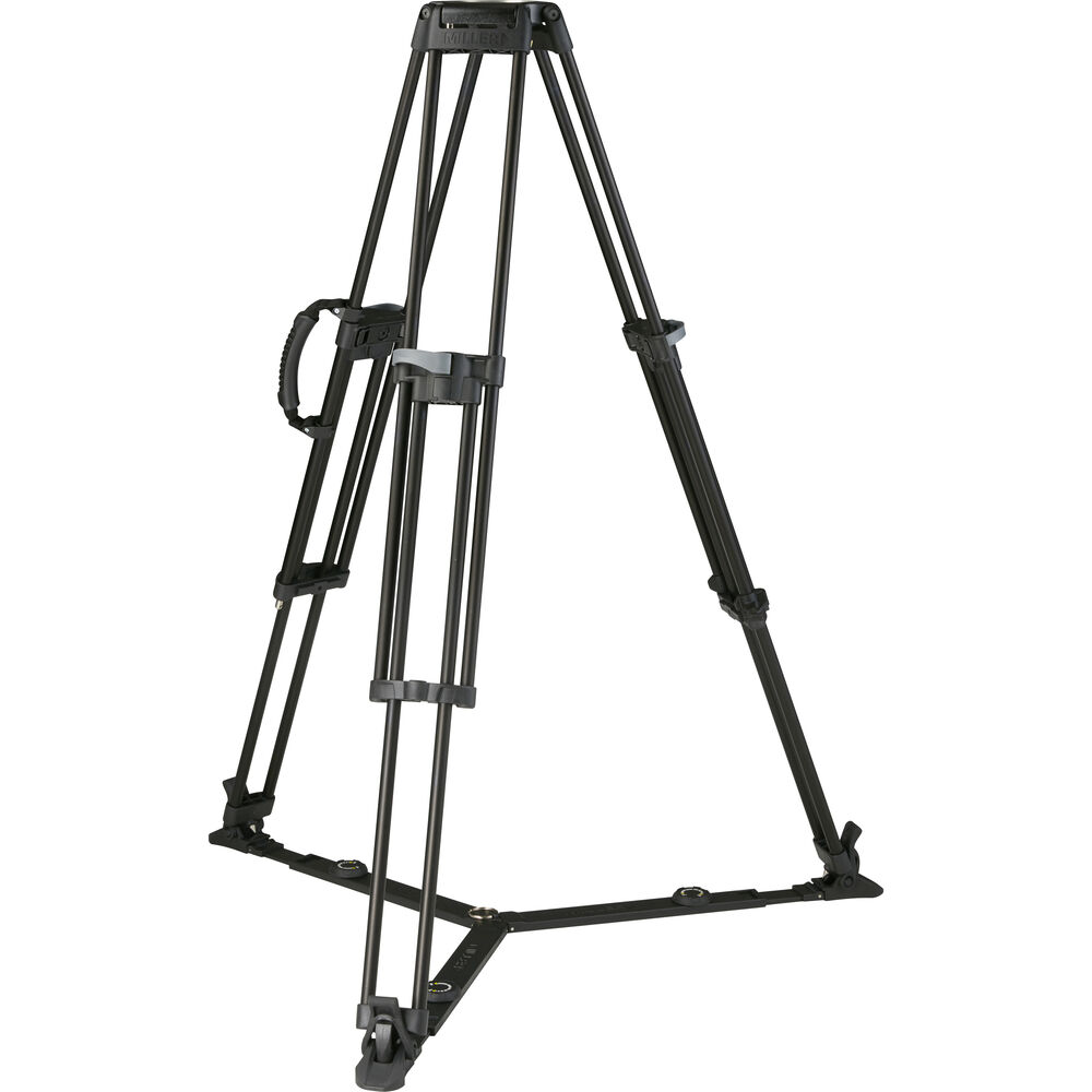 The Miller Sprinter II 1-Stage Alloy Tripod is a quick-setup solution for a tripod head with 100mm ball base. Its light weight, flip-locks, and rigid construction allow for durability without compromising usability in ENG, EFP, and other pro video applications. The fast setup is complemented by an in-line carry handle, for portability on set or in the field. Compatible spreaders, rubber feet, and dollys are available separately.