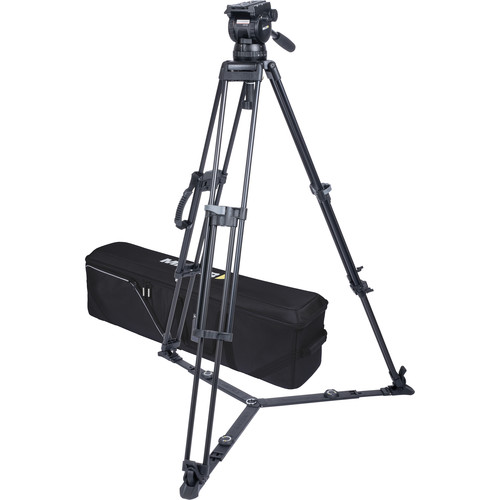 The CX10 Sprinter II 1-Stage Alloy Tripod System with Ground Spreader from Miller provides the stability of a 100mm ball base fluid head and a flexible ground spreader that self-adjusts to uneven surfaces. The included CX10 fluid head supports up to 26.4 lb payloads and offers 15+0 steps of counterbalance and 5+0 steps of pan and tilt drag. With counterbalance, pan, and tilt all capable of being set to zero, even the most compact and lightweight cameras can be swapped in when necessary. The 1589G Sprinter II 1-stage aluminum tripod legs feature two leg sections and are adjustable between 26 to 56" of working height. The system is complete with a pan handle and a soft carry case.