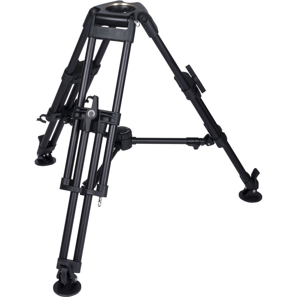 The heavy-duty Miller HDC 100 1-Stage Short Metal Alloy Tripod is a quick-setup solution for a tripod head with 100mm ball head base. Its short design and metal alloy construction support up to 210 lb for use in ENG, EFP, and other pro video applications.