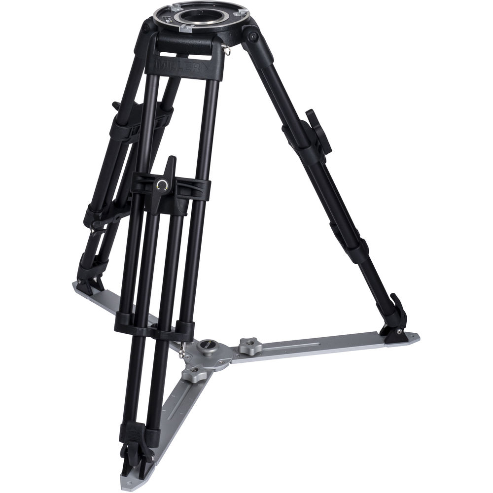 The heavy-duty Miller HDC MB 1-Stage Short Metal Alloy Tripod is a quick-setup solution for a tripod head with a flat Mitchell mount. Its short design and metal alloy construction support up to 210 lb for use in ENG, EFP, and other pro video applications.