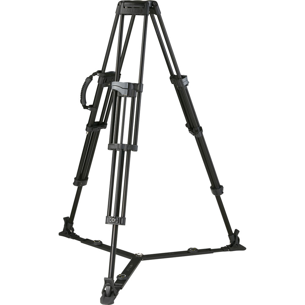 The Miller Sprinter II 2-Stage Alloy Tripod is a quick-setup solution for a tripod head with 100mm ball base. Its light weight, flip-locks, and rigid construction allow for durability without compromising usability in ENG, EFP, and other pro video applications. Unlike many traditional multi-stage designs, both flip-locks are located on the same section for easy reaching, no matter the height setting. The fast setup is complemented by an in-line carry handle, for portability on set or in the field. Compatible spreaders, rubber feet, and dollys are available separately.