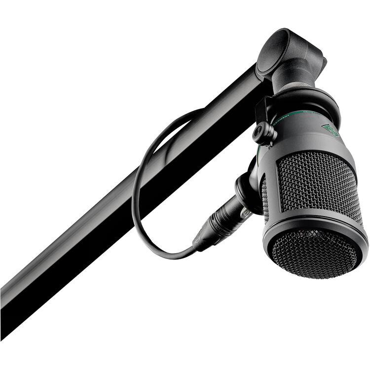 Designed for speech reproduction at close range, the mic features an integrated pop screen and a frequency response that compensates for the overemphasis of the bass arising from the proximity effect. Both the capsule and the microphone are elastically suspended in order to provide protection from structure-borne noise and rumble. The foam pop screen protects the capsule from dirt, moisture, and nicotine. For increased hygiene, the head grille twists off easily for quick cleaning. The BCM 705 mt attaches to most standard microphone boom arms.