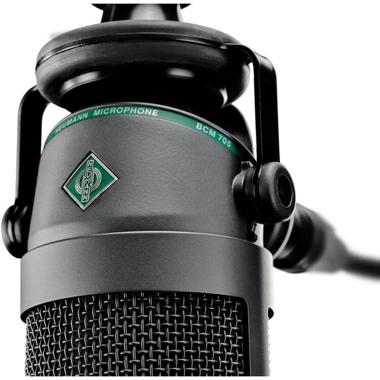 Specifically engineered to meet the needs of radio DJs, announcers, newscasters, talk-show hosts, podcasters, and streamers, the matte black Neumann BCM 705 mt Broadcast/Podcast Microphone is particularly well suited for local radio stations and small studios as well as demanding streaming and podcast applications. The BCM 705 mt's hypercardioid polar pattern and close-speech-optimized dynamic capsule help to keep extraneous noises off the air, even if the sound-proofing is less than perfect. This model features a matte black finish that's visually unobtrusive while looking classy, making the microphone ideal for on-camera YouTubers—and, of course, for anyone who prefers their studio equipment in black.