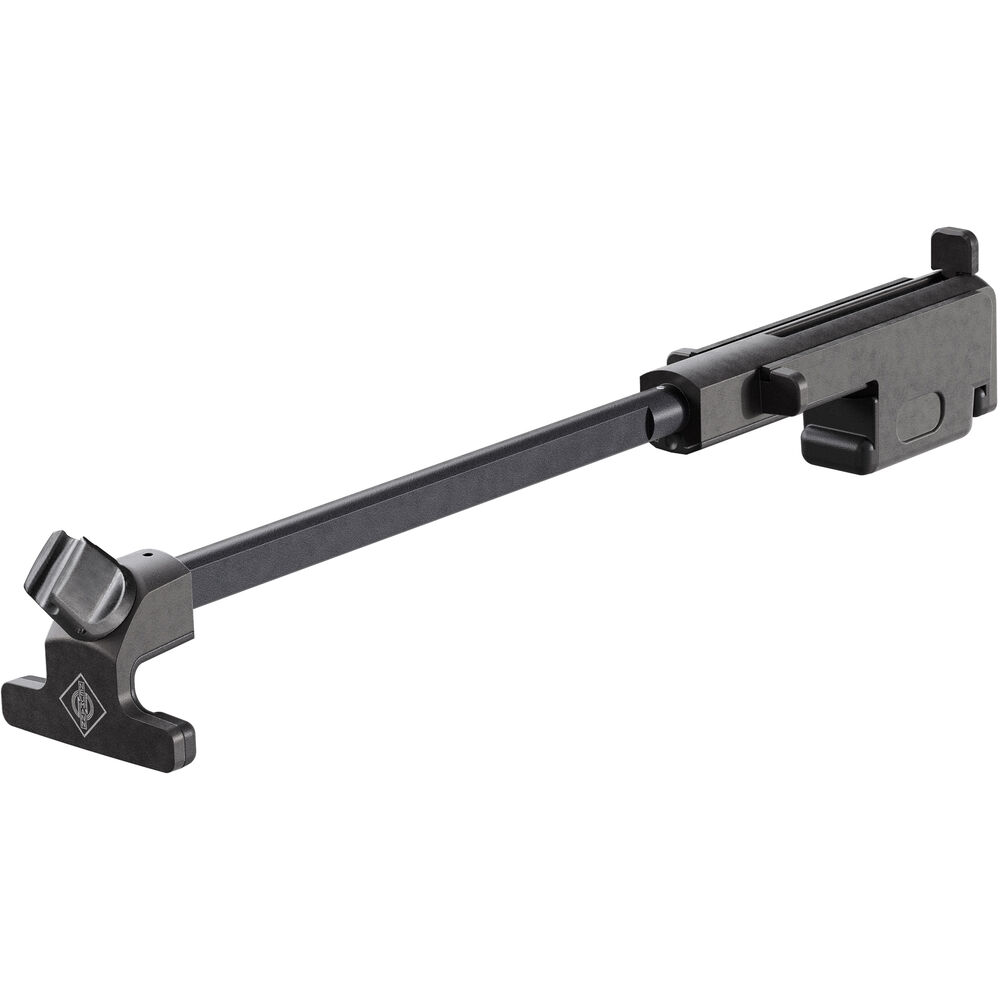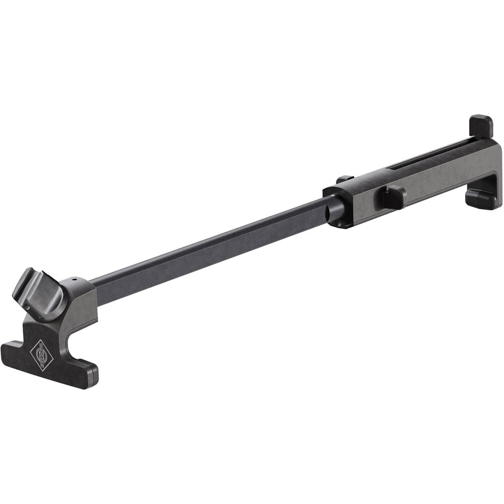 Part of the Miniature Clip Mic (MCM) system, the Neumann MC 4 is a clip used to mount the SH 150 MCM gooseneck on the rib/body of a double bass. The gooseneck attaches to the clip via a holder that rotates along one or two axes and locks in 45° increments to prevent cable twists and allow for precise and reliable positioning of the microphone over the instrument.