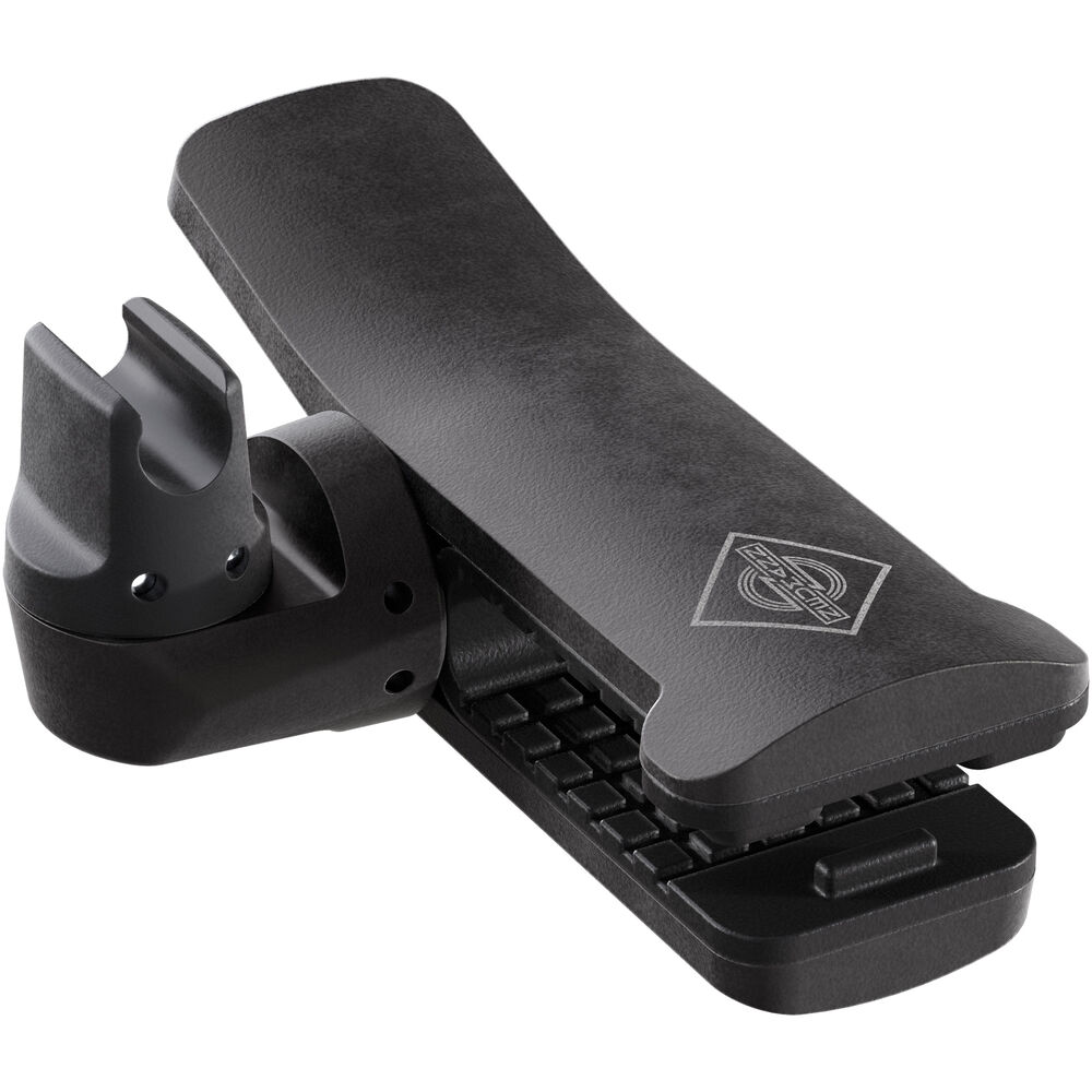 Part of the Miniature Clip Mic (MCM) system, the Neumann MC 6 is a universal clamp used to mount the SH 150 MCM gooseneck on the bell of a trumpet, trombone, saxophone, or French horn. It can also be used with percussion instruments and pole stands. The gooseneck attaches to the clip via a holder that rotates along one or two axes and locks in 45° increments to prevent cable twists and allows for precise and reliable positioning of the microphone over the instrument.