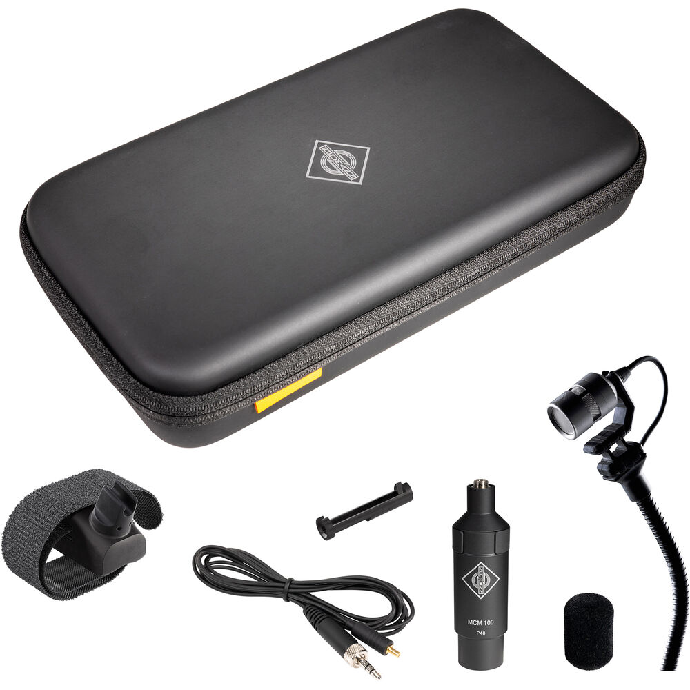 The MCM 114 SET WOODWINDS system includes a KK 14 cardioid capsule head, flexible 6" gooseneck, and MC 5 clip for mounting the gooseneck on the instrument. There is also an AC 31 cable with 3.5mm locking connectors for connecting the capsule to either the included MCM 100 48V phantom-powered XLR output-stage module or to the locking mini-jack input found on many Sennheiser wireless transmitters. The system's modular construction is designed to ensure a long service life that lasts for years. Manually assembled in Germany to align with Neumann's high standards, the MCM delivers first-rate tonal consistency plus that Neumann aesthetics and handling.