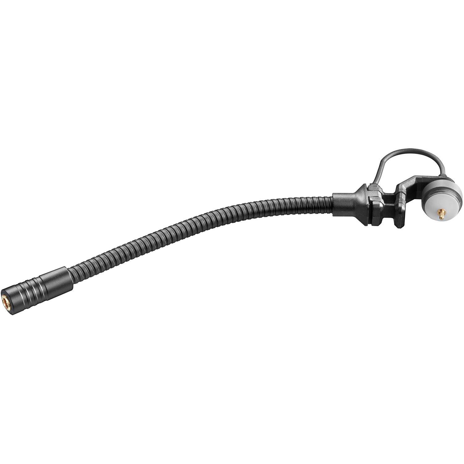 The SH 100 is wired internally with a cable terminated with a proprietary connector at one end to connect the KK 14 capsule and another proprietary connector at the other to connect one of the MCM output cable (available separately). An instrument-specific MCM clip (available separately) is required to mount the SH 100 on your instrument. The included KC 1 cable brace can be used to keep the cable neat and tidy away from the instrument, while preventing unwanted cable noise. Three different lengths of SH goosenecks are available—3.9, 5.9, and 9.8"—allowing you to precisely fit the microphone to your instrument.