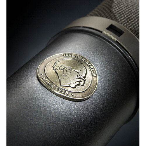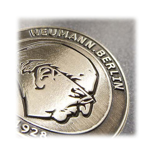 Visually, too, the TLM 67 has a retro touch with a special dual-color scheme, combining a capsule head in classic satin nickel with a stylish pearl-gray body. Released in 2008, the TLM 67's front is graced by a metal emblem of the company's founder, Georg Neumann, commemorating the company's 80th anniversary.