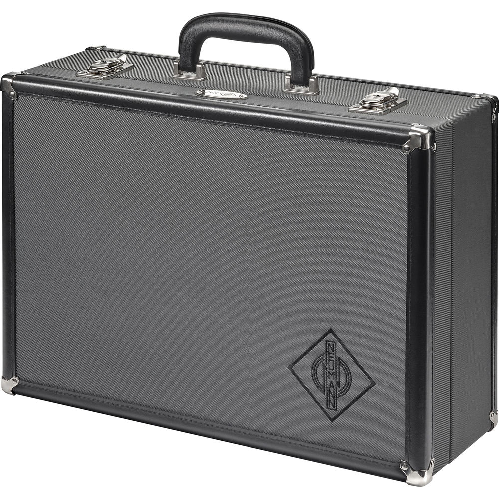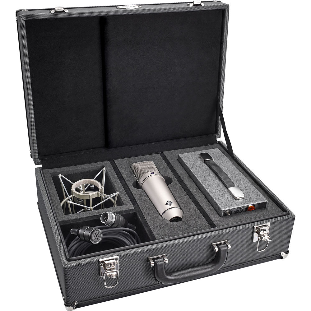 The U67 Set includes a matching shockmount, power supply, and proprietary 7-pin XLR cable. The mic and its accessories fit snugly in the supplied aluminum carry case.