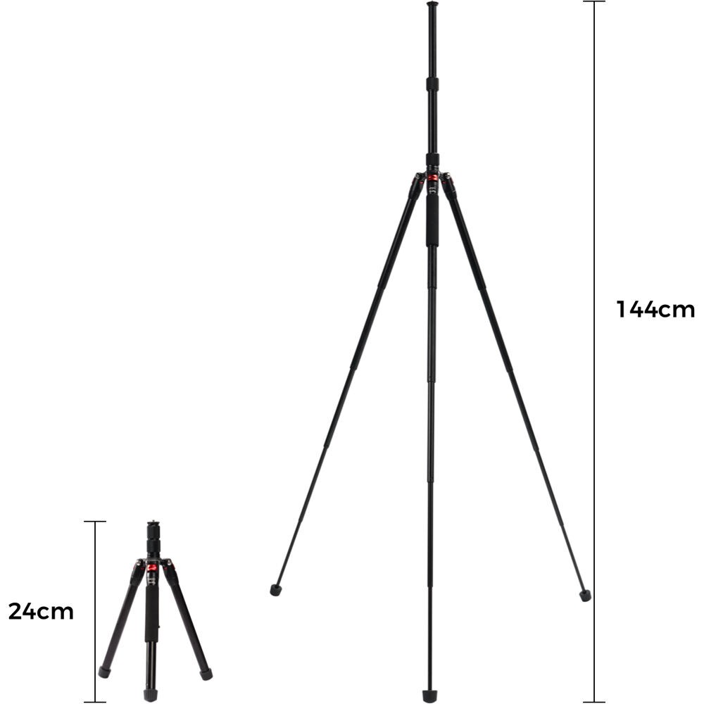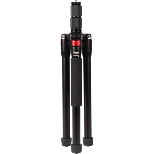Designed for OBSBOT PTZ cameras like the Tiny series, this Foldable Lightweight Tripod helps you set your camera at the proper height for livestreaming or recording. The tripod has a 9.4 to 56.7" working height range that can be adjusted using the five leg sections and flip locks. It can achieve such a wide height range due to the legs' independent spread with three angle stops at 22, 50, and 83°. A 1/4"-20 camera screw can secure your PTZ camera or compatible 22 or 19mm ball heads to the tripod. The tripod is constructed of aluminum alloy and stainless steel for a durable yet lightweight construction, weighing in at only 1.8 lb.