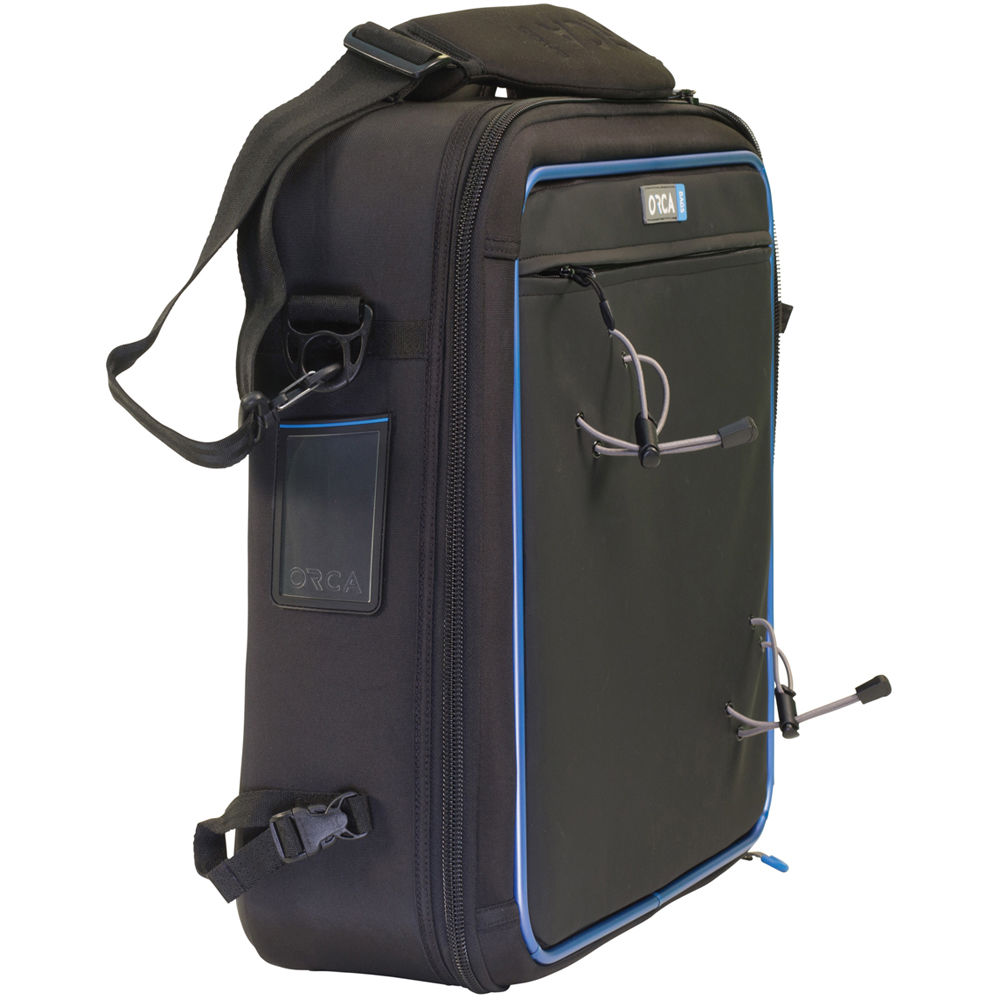 Store and protect a standard 1000 LED 1x1 light with power supply, cables, small connectors and a light stand with the Light Case from Orca. The case has an inner pouch for small accessories. Exterior bungee cords are useful for attaching a small light stand or other item. This strong case features an external aluminum frame, internal honeycomb frame, and layers of foam and EVA. Carry the light case with the padded top strap, removable shoulder strap, or connect to another LED bag.