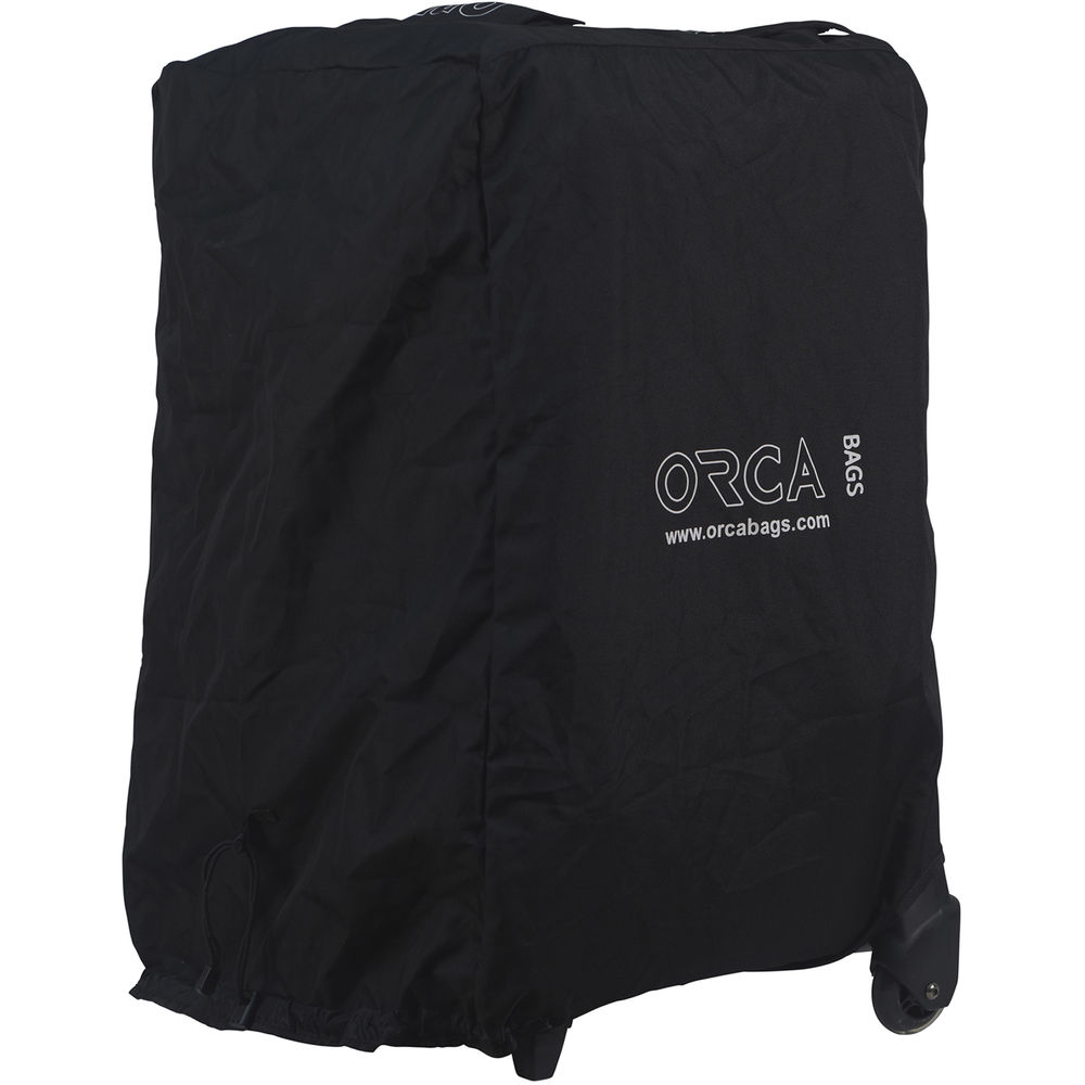 The OR-110 Protective Cover from ORCA is designed to protect and secure the OR-48 ORCART during field and check-in transportation. The cover comes with a spring buckle to adjust its diameter, two top special openings for the bag trolley handle, and an external label/business card mesh pocket. For easy storage, the cover can be folded into a small pouch.