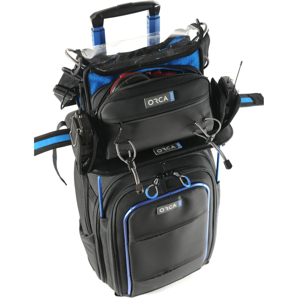 The OR-157 Top Tray from ORCA provides a steady, flat work surface for the top of your OR-26 Trolley Backpack. Secured by a buckle system, the OR-157 will support any ORCA audio bag or a 15 to 17" laptop.