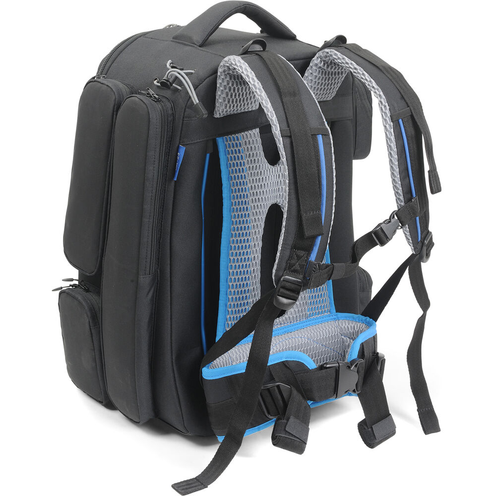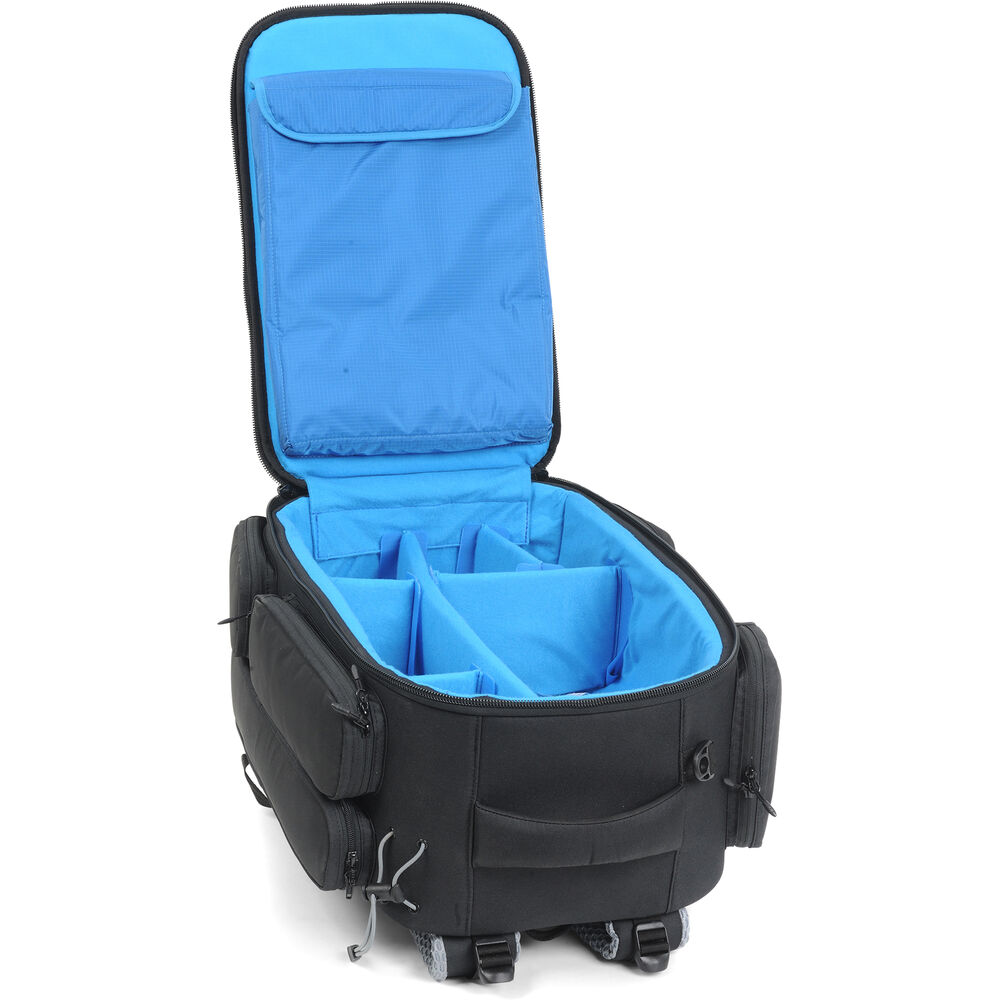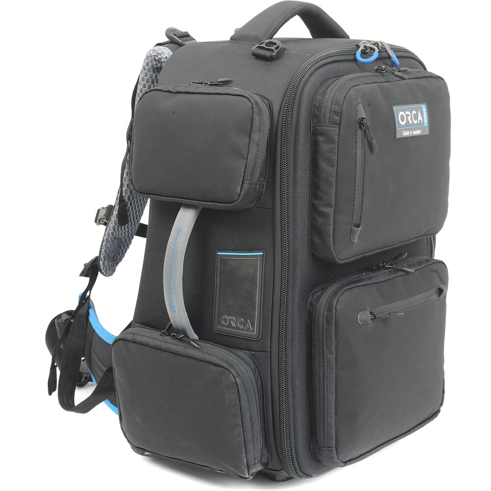 The OR-23 Backpack from ORCA Bags provides thickly padded protection when toting your medium-sized video camera and its accessories. This backpack features padded, ventilated backpack straps, a built-in rain cover, a waist belt, and two carry handles. Organizing features include a 17" laptop pouch, adjustable interior dividers, and seven zippered exterior pockets.