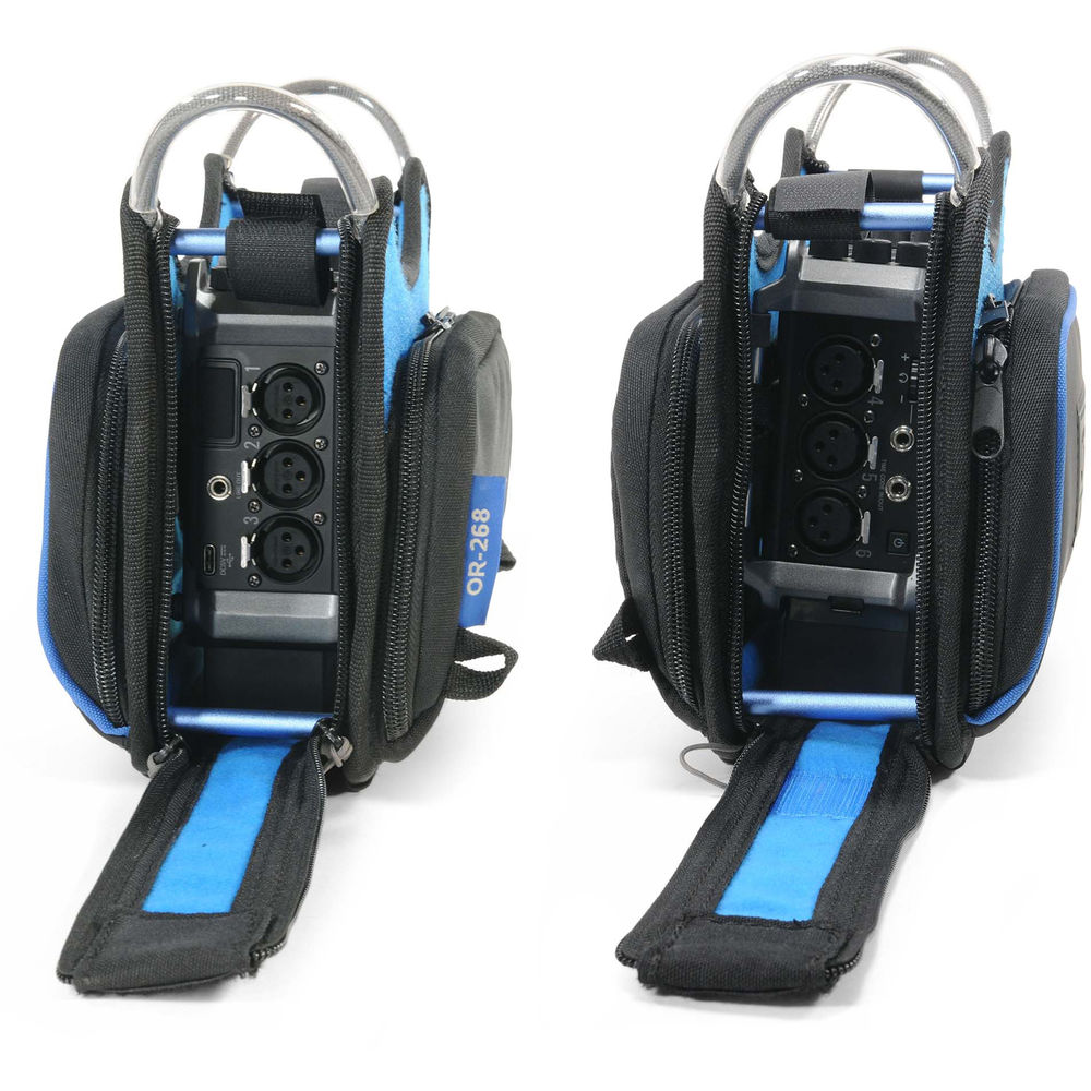 The Orca OR-268 is a low-profile audio mixer bag ideal for use with the Zoom F6 field recording mixer. The case features a compact and lightweight design, a rigid frame, access from all sides, and front and back pockets for wireless systems and batteries. The OR-268 includes a shoulder strap and a transparent top cover.