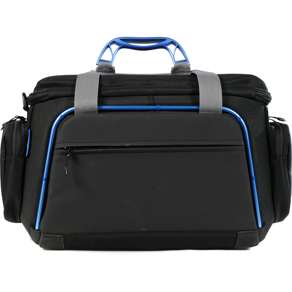 An integrated light strip helps illuminate the bright blue interior, so you are better able to see what's inside when working on dimly lit sets or night shoots. . The bag has four zippered external pockets for carrying additional accessories, such as items that you want easy access to without having to open the main compartment. A removable padded shoulder strap and two side handles allow you a choice in carrying the bag, and an ID card window is built into one of the end pockets.