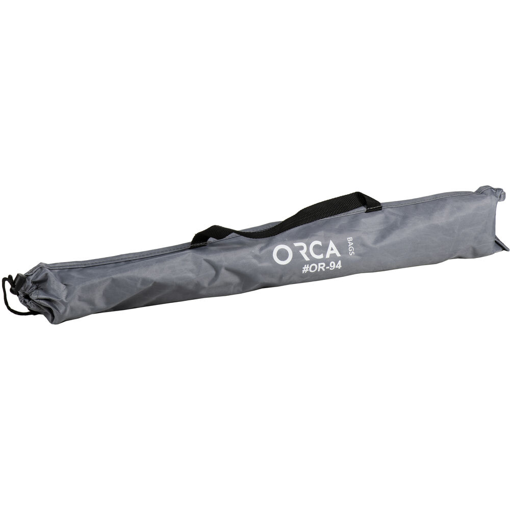 Offering a comfortable perch for on-location work, the Outdoor Folding Chair from ORCA supports up to 264 pounds and folds up for easy transport or storage. Featuring three strong aluminum legs and a sturdy nylon top cover, the chair comes with a handy carry bag and pairs nicely with the OR-48 ORCART mobile audio workstation or the OR-14 camera trolley bag.