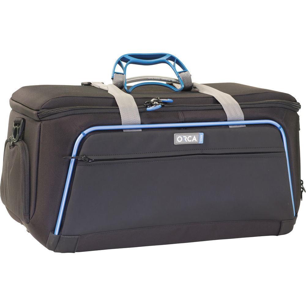 The Shoulder Video Bag OR-12 from ORCA is designed to carry and protect a video camera up to 20.4" in length and its related items. The bag features an external aluminum frame, internal honeycomb frame, and layers of foam and EVA padding. The bag has four external pockets, a padded shoulder strap, two side handles, and a flexible internal dividing system that can be reconfigured depending on your needs. This bag is compatible with the Orca Trolley System for easy transportation.