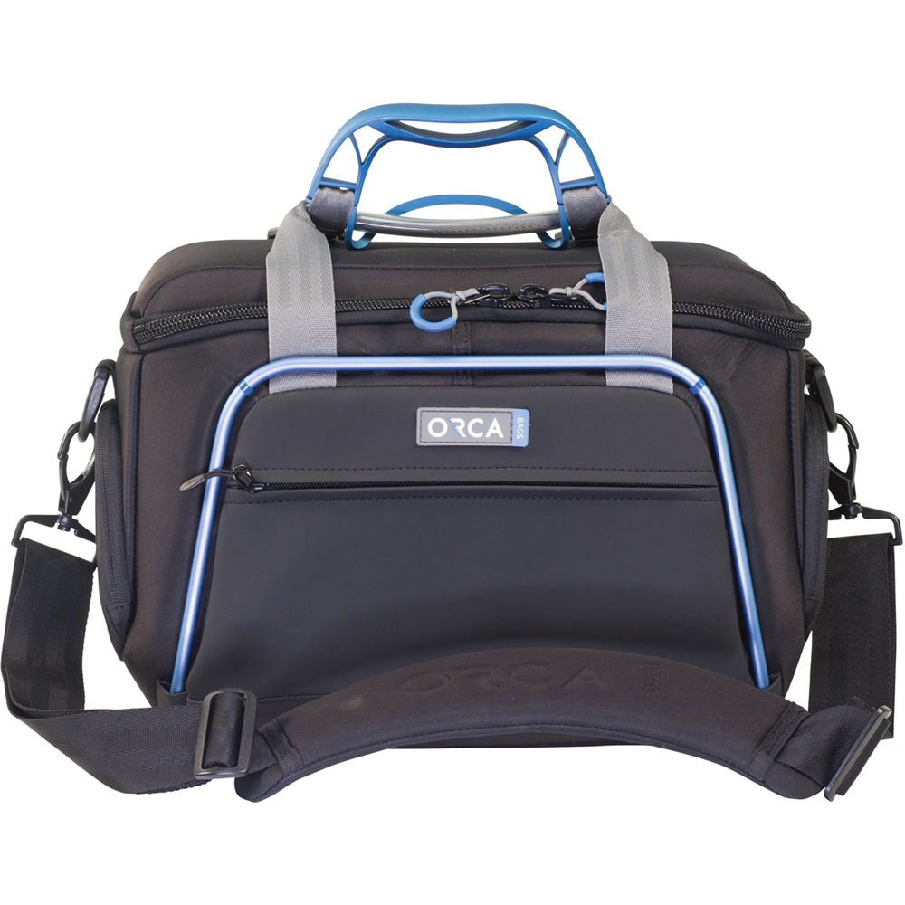 The Shoulder Video Bag OR-4 from ORCA is designed to carry and protect a video camera up to 13.77" in length and its related items. The bag features an external aluminum frame, internal honeycomb frame, and layers of foam and EVA padding. The bag has four external pockets, a padded shoulder strap, two side handles, and a flexible internal dividing system that can be reconfigured depending on your needs. This bag is compatible with the Orca Trolley System for easy transportation.
