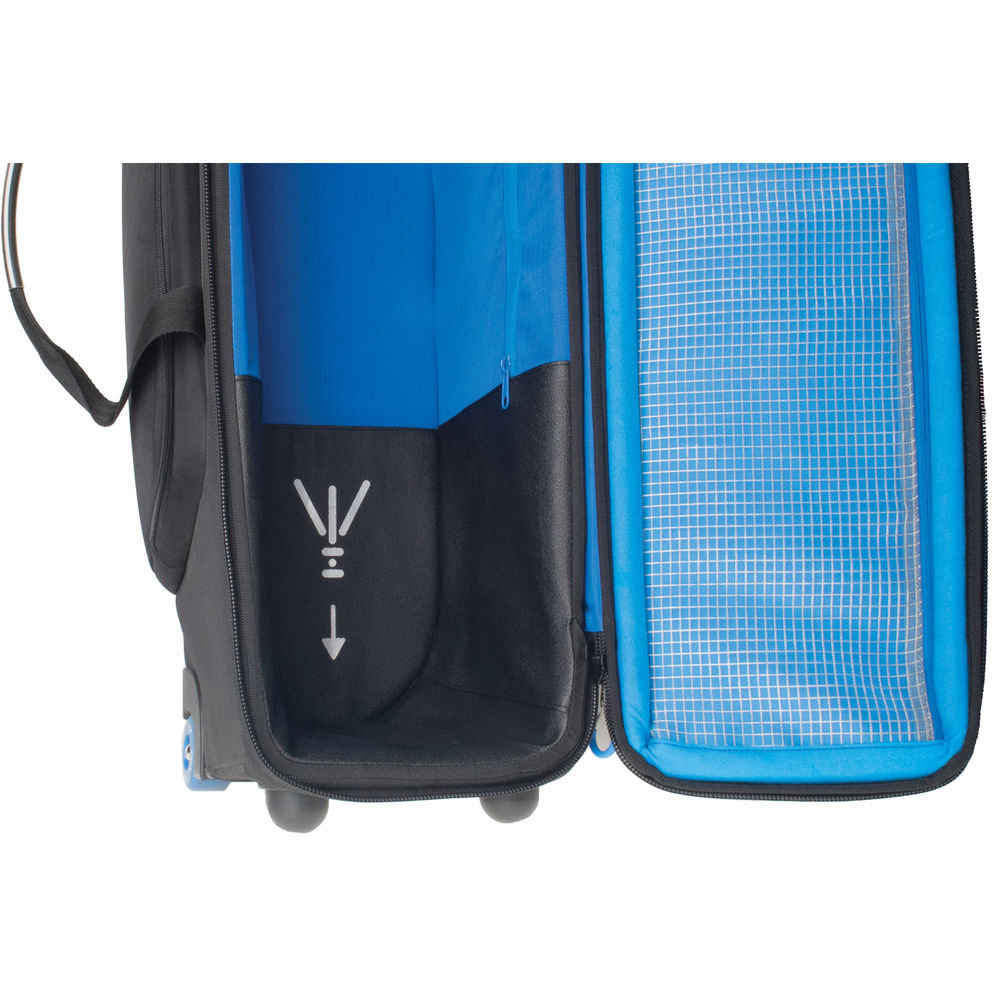 Inside the bag, there is a head mark for positioning the tripod in the correct side, webbing straps to secure the tripod in place, a pocket with zipper for an extra tripod handle or camera plate, and special anti-friction material to protect the inside of the bag from the tripod's sharp elements.