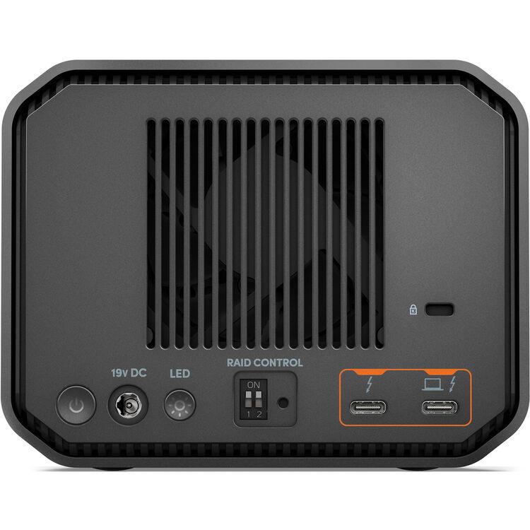 Designed for 4K, 8K, and VR video workflows, the 16TB G-RAID PROJECT 2 2-Bay Thunderbolt 3 RAID Array from SanDisk Professional is a high performance, 2-bay enterprise-class storage system. Equipped with an overall capacity of 16TB that is made of up 2 x 8TB 7200 rpm Ultrastar Enterprise-class hard drives, the G-RAID PROJECT 2 delivers read speeds of up to 480 MB/s and write speeds of up to 490 MB/s. Using a hardware controller, it comes preconfigured as RAID 0, which stripes the drives together for faster performance. If you don't need RAID 0, RAID 1, and JBOD are also supported. In terms of connectivity, this array is equipped with two 40 Gb/s Thunderbolt 3 ports, one of which is used for host connectivity, while the other remains available for daisy-chaining up to five additional devices. Also available is a PRO-BLADE SSD Mag slot, allowing users to work with content from a PRO-BLADE SSD Mag. The G-RAID PROJECT 2 comes preformatted for macOS 11 or later and iPadOS 14 or later, but may be used with Windows 10 and 11 via a simple reformat.