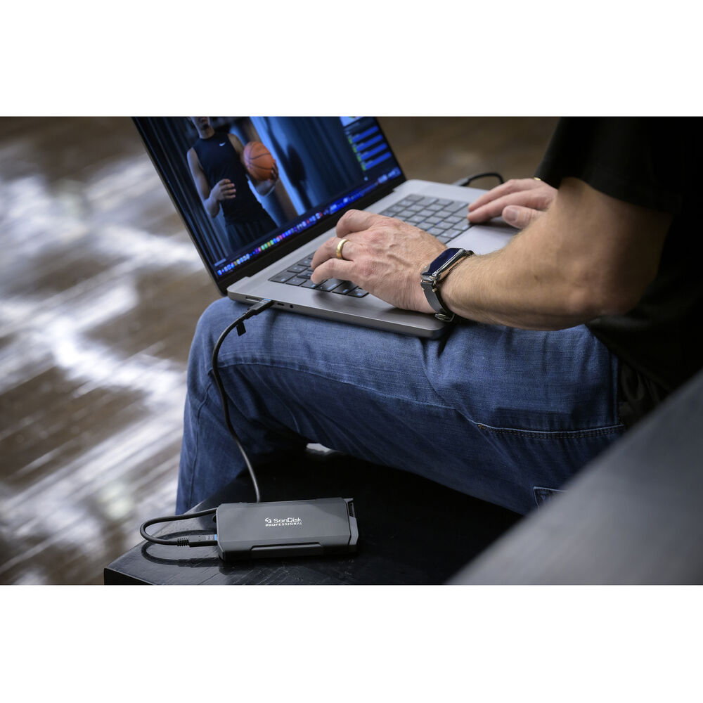 The 4TB PRO-BLADE TRANSPORT from SanDisk Professional is a premium, portable SSD for ultra-fast workflow scalability. It features a 20 Gb/s USB-C 3.2 Gen 2x2 interface that drives read and write speeds up to 2000 MB/s. The USB-C interface also allows users to make a direct connection to their compatible camera rig for longer takes and faster offload times. The PRO-BLADE TRANSPORT receives bus power via USB and keeps cool using an integrated aluminum heat sink. To further protect your data, this SSD can withstand drops from up to 9.8' on a carpeted concrete floor and has a crush resistance of up to 4000 pounds. SanDisk formats each PRO-BLADE Transport as APFS for macOS 10.13 and later, although it may be used with Windows 10 and later via a simple reformat.