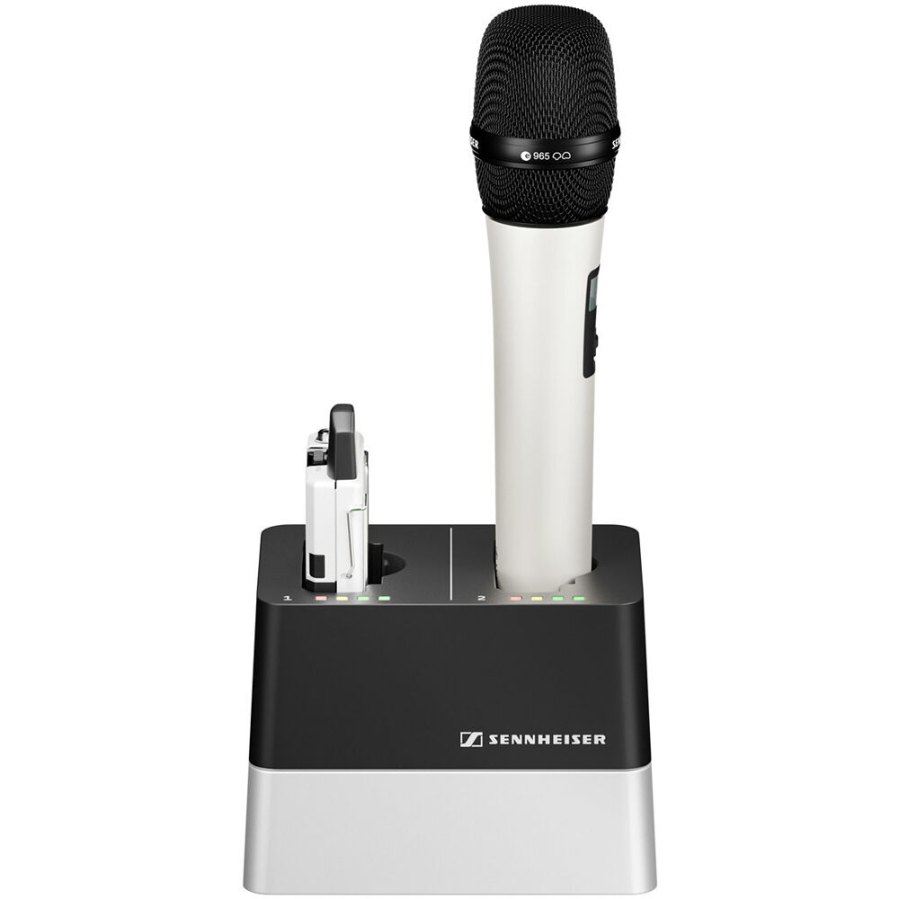 The Sennheiser CHG 2N is a network-enabled charger with two separate charging slots. These ports can be used to charge Accupacks while inside a SpeechLine SL Bodypack DW or SL Handheld DW wireless transmitter.