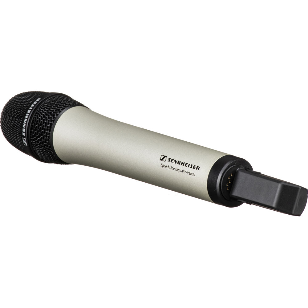 The SpeechLine Digital Wireless SL Handheld Set DW-4-US RM from Sennheiser is a wireless microphone system with rackmount kit that includes a handheld transmitter, a stationary receiver, and a MME 865 condenser capsule. It can be used to capture speech in presentations or lectures for meetings, conferences, and more.