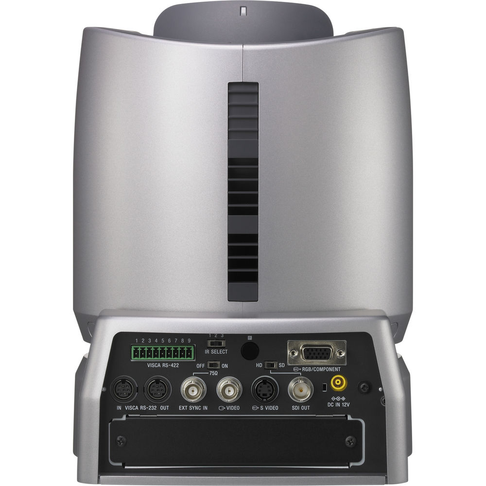 The camera head produces HD video in 1080i or 720p, using the 1/2" Exmor Full HD 3CMOS sensor and a 5.8-81.2mm / f/1.9-f/2.8 optical zoom lens. It features a sensitivity of 4-lux at F1.9 with gain at + 24 db, for low light shooting capability. An extensive image-control menu tree is accessible by remote, allowing for fine-tuning and optimizing of the image. The BRC-H900 has a slot for a single expansion card. Optional cards are available for adding additional HD/SD-SDI output, additional analog SD output, HD Optical Multiplex capability, or IP control.
