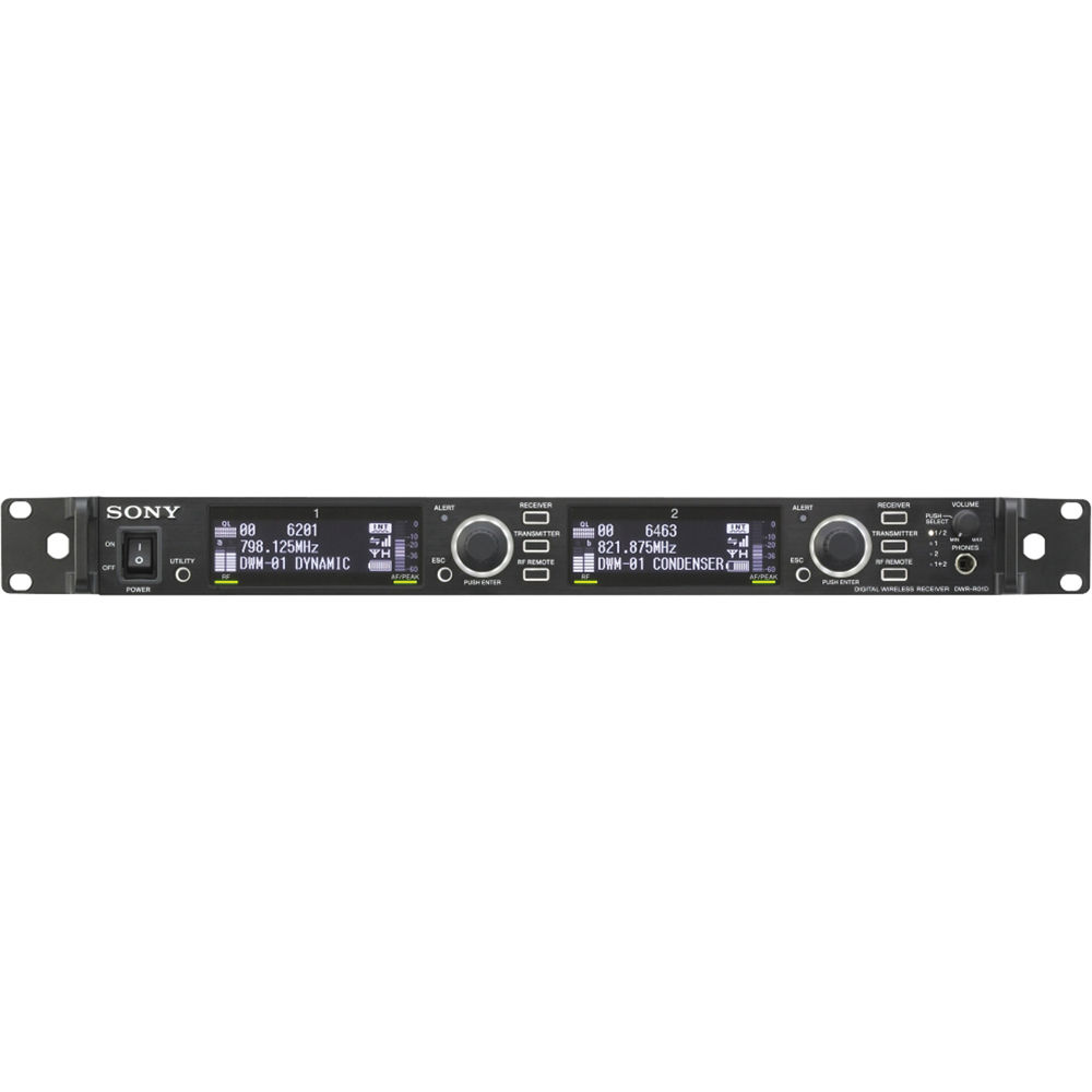 The DWR-R01D/30 Dual Channel Diversity Receiver from Sony is designed to work with DWL wireless systems. It is capable of receiving 48 kHz/24-bit audio via true diversity and features two XLR analog outputs as well as 2 AES/EBU digital outputs via XLR. Each channel features its own OLED display and is capable of controlling the connected transmitter. The clear and active channel scan is designed for easy setup by scanning available frequencies and automatically tuning the receiver to them. The DWR-R01D/30 can be controlled remotely via available remote control software for PC.