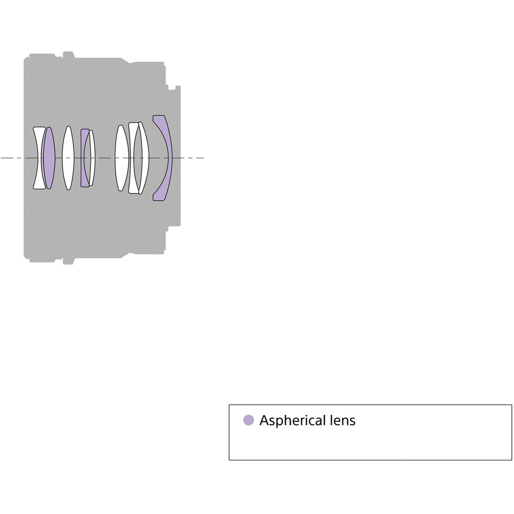- Three aspherical elements promote more uniform sharpness across the frame by suppressing spherical aberrations and distortions.