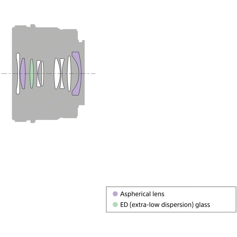 - Two aspherical elements promote more uniform sharpness across the frame by suppressing spherical aberrations and distortions.
