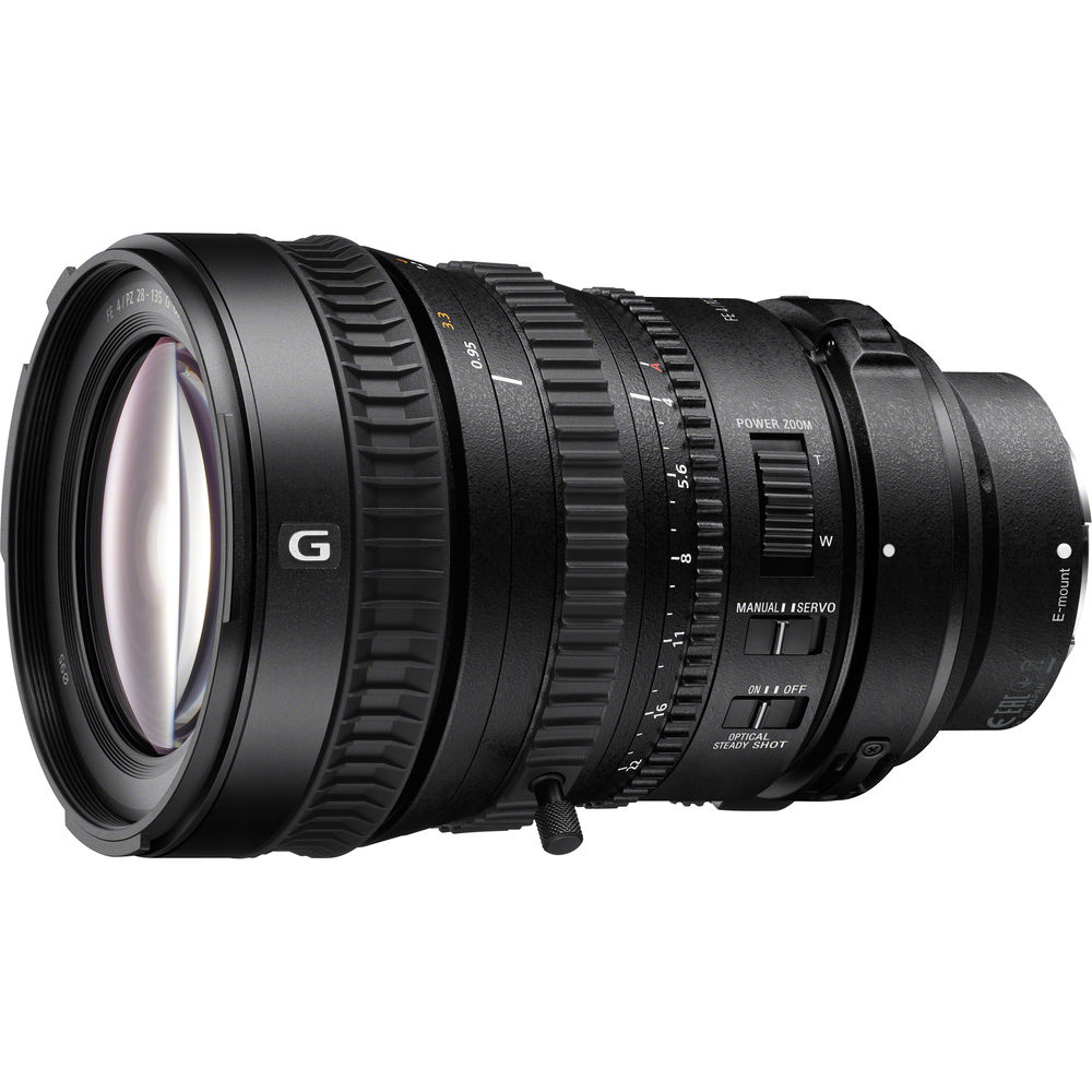 Designed to satisfy 4K production requirements, the Sony FE PZ 28-135mm f/4 G OSS Lens is a wide-ranging zoom lens that covers wide-angle to telephoto perspectives while adding many features for your full-frame, APS-C, or E-mount camcorder or still photography camera system. The lens features a powered zoom control with a variable speed and zoom rotation direction reversal capability. Powering the zoom function is an SSM (Super Sonic wave Motor) drive that allows precision and quiet operation. Focus noise is also minimized through weight reduction of the focus element group and use of a linear motor. Iris function is also designed to be smooth and silent for cinematography demands.
