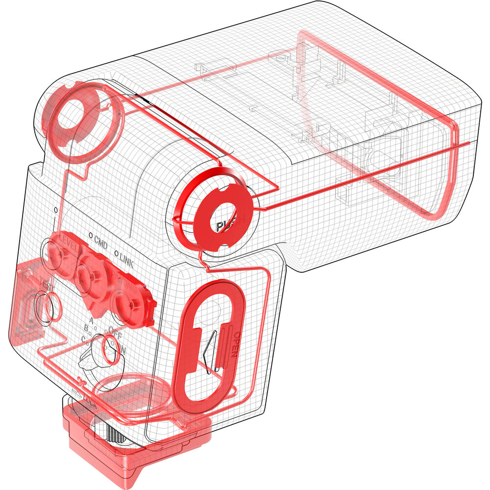 Equipped with a 2.4 GHz radio transceiver, the HVL-F28RM is able to operate as either a radio commander or remote as part of Sony's radio wireless system, including the FA-WRC1M Wireless Radio Commander and FA-WRR1 Wireless Radio Receiver. This system has an operating range of approximately 115' and does not require line-of-sight. Also, it will support up to 15 flashes in five groups on one of 14 channels. Additionally, it has full support for Sony's P-TTL / ADI metering system, including high-speed sync and ratio control.