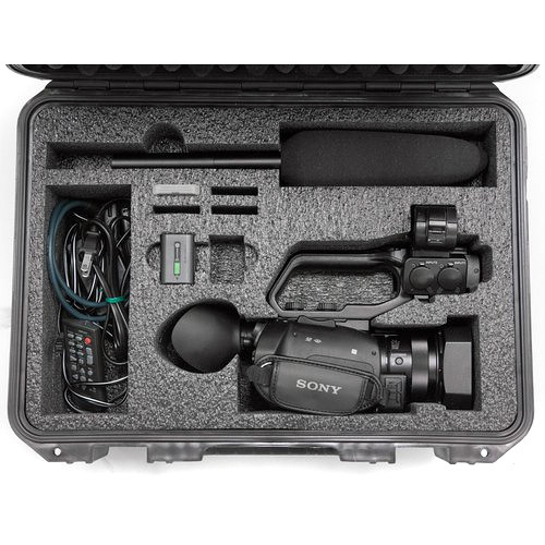 Using custom-cut foam, this waterproof SKB Hard Carrying Case from Sony protects your PXW-Z90V camcorder during transport and storage. In addition to the camera itself, this case has cutouts for two extra batteries, four memory cards, a shotgun microphone with a windscreen, and other pertinent small accessories. The exterior is manufactured from a high-strength polypropylene copolymer resin that is resistant to impact and inclement weather. When closed, the rubber gasket seal keeps moisture out, while the automatic pressure valve ensures that the case is easy to open after altitude changes. Trigger-release latches are quick and easy to operate when opening and closing the case. The over-molded rubberized handle provides a comfortable grip when holding the case.