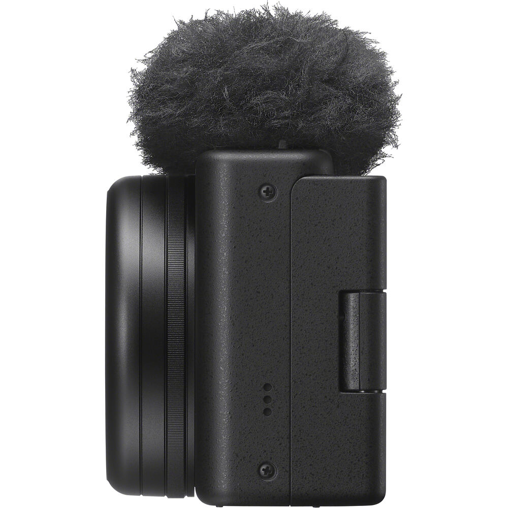 Elevated content is easier to produce with the camera's Cinematic Vlog setting, Slow & Quick shoot mode, and its intelligent built-in microphone. The Cinematic Vlog setting triggers a fixed 2.35:1 aspect ratio and 24 fps frame rate while offering a selection of "Looks" and "Moods" to refine the image aesthetic. Slow & Quick mode allows you to apply frame rate adjustments in camera , up to 5x slower and 60x faster, from a single, simple screen. The built-in, three-capsule microphone is multidirectional and, when used in auto mode, uses the camera's face- and object-recognition software to select the best direction for the microphone. A 3.5mm microphone jack and a multi-interface shoe allow compatibility with external microphones, and the camera comes with a windscreen to ensure clear sound when you're shooting outdoors.