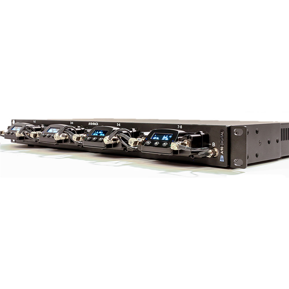 Connect the A10-RACK to a Dante network, and all eight channels of high-quality audio from the wireless receivers can be transported over a single Cat5 network cable. Monitoring and routing of signals from transmitters to receivers is simplified with the Dante Controller, a free software application from Audinate.