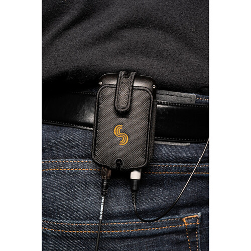 This easy-to-assemble Belt Clip & Holster from Sound Devices is compatible with the A20-Mini Digital Wireless Bodypack Transmitter and Recorder. It secures the transmitter in place using hook-and-loop fastener strips and attaches the transmitter to the talent's garments.