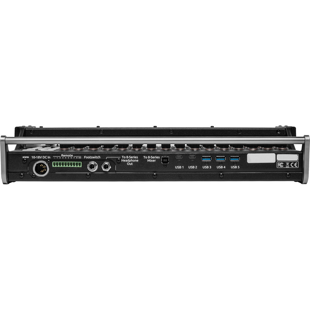 You'll find 32 multifunction controls for adjusting gains past channel 16, as well as for controlling bus gains, output gains, panning adjustments, and EQ. Five user-assignable buttons can be programmed to handle tasks you deem the most important, and built-in USB ports on the rear provide charging for phones, tablets, battery chargers, or other compatible gear. You'll find three USB Type-A and two USB Type-C ports.