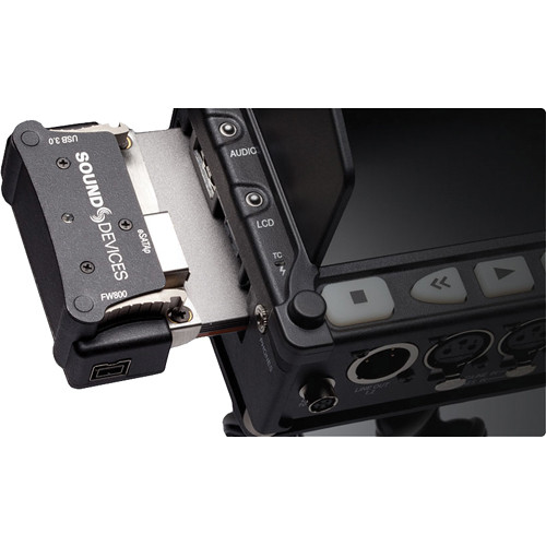 FireWire 800 and USB 3.0 connections for mounting 2.5" SSD to computers as UDF volumes when the Caddy is not attached to a PIX recorder