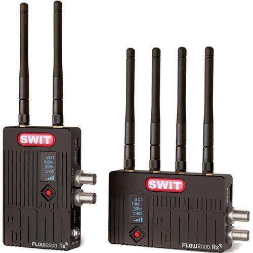 View your video capture up to 2000' away from your camera using the FLOW2000 SDI & HDMI Wireless Video System from SWIT. This set includes one transmitter and one receiver, each with a Sony L-Series type battery plate and DC input, that transmit up to 1080p60 uncompressed video and feature 3G/HD/SD-SDI and HDMI inputs/outputs, AES-128 encryption, and embedded SDI/HDMI stereo audio.