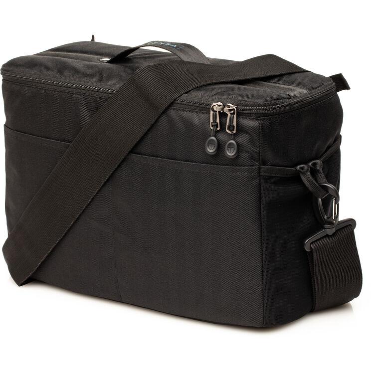The black BYOB 13 Camera Insert from Tenba is designed to carry and protect a camera and gear inside other non-camera bags including larger backpacks, suitcases, or handbags. Its soft outer shell molds to the shape of many different types of bags. The BYOB 13 will hold a DSLR camera body with up to 3 lenses and accessories including an attached 70-200mm f/2.8. Padded interior dividers are adjustable to fit multiple configurations and the soft-brushed tricot-lined interior will not scratch your equipment. The insert features a zippered top cover that can be folded back and stowed to allow easy access to your gear plus a handle for carrying and quick removal of the insert. Stretch mesh pockets provide a place to store your phone, camera and lens accessories, or other items. The zippered interior pockets secure smaller more valuable items. In addition there are front and rear pockets for acessories and a D-ring to attach keys, a carabiner, or a tethered media wallet.