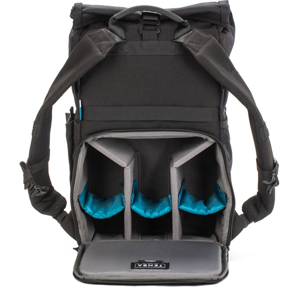 - The roll top design allows the wearer to easily compress the backpack according to the specific amount of equipment placed inside it while effectively sealing out moisture and dust, or expand it's carrying capacity by rolling it less